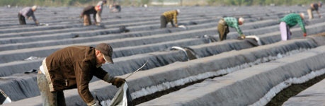 Wanderarbeiter aus Osteuropa als Erntehelfer machen es möglich. Sie stechen Spargel, pflücken (bald) Erdbeeren oder helfen bei der Gemüseernte. Ihr Lohn ist niedrig und doch wesentlich höher als in ihren Herkunftsländern, was diese Menschen immer wieder zu saisonal weiten Fahrten veranlasst, in ihrer Heimat oft den Jahresurlaub dafür verwendend, Familie und Bekannte verlassend, um die Existenz der Angehörigen in der Heimat sicherzustellen.