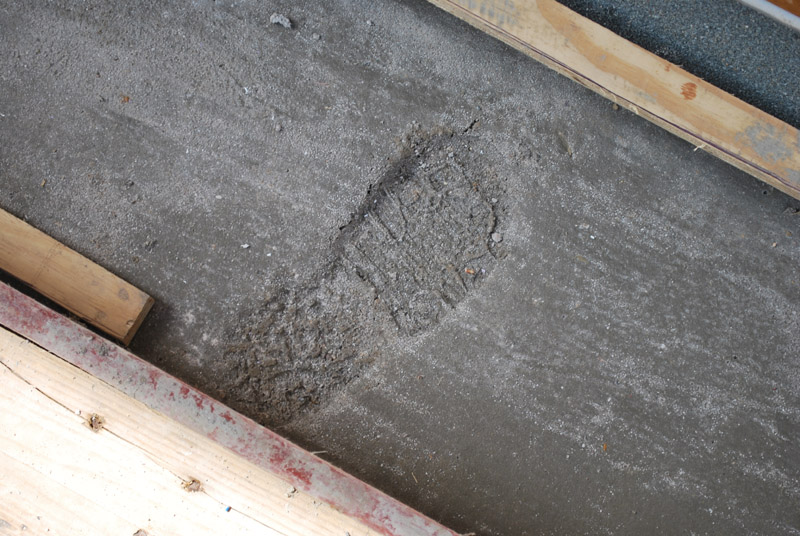 Der Betonquader mit dem Fußabdruck und der Unterschrift von Ministerpräsident McAllister.